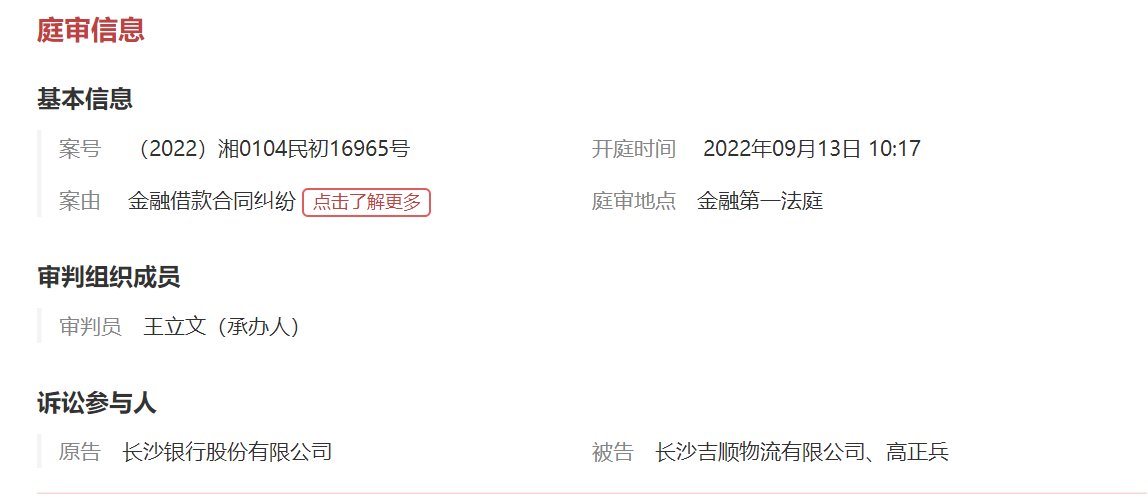 长沙银行状告长沙吉顺物流,因金融借款合同纠